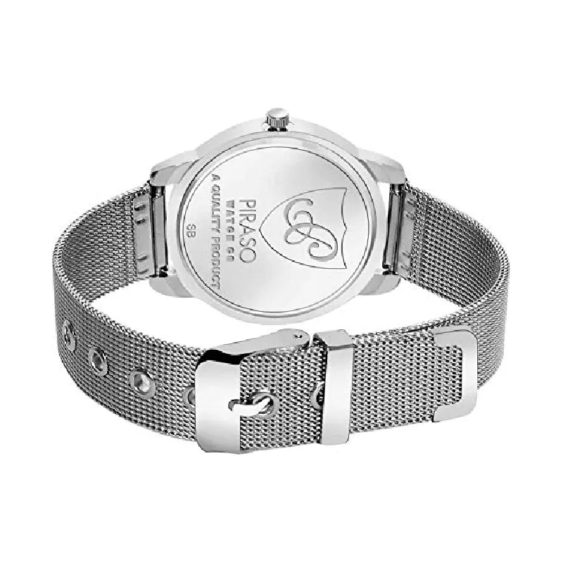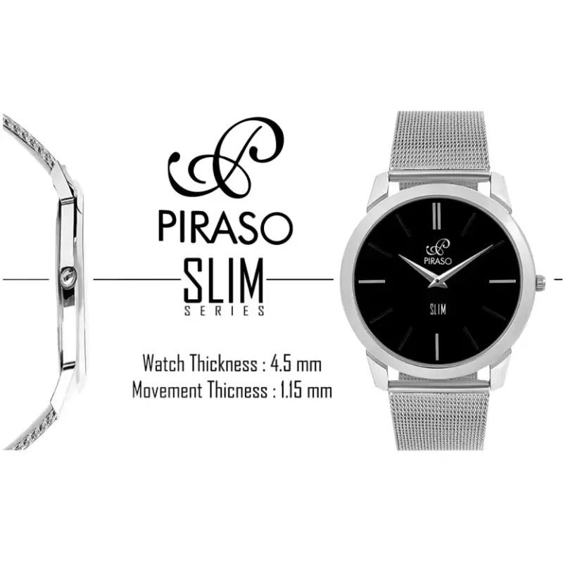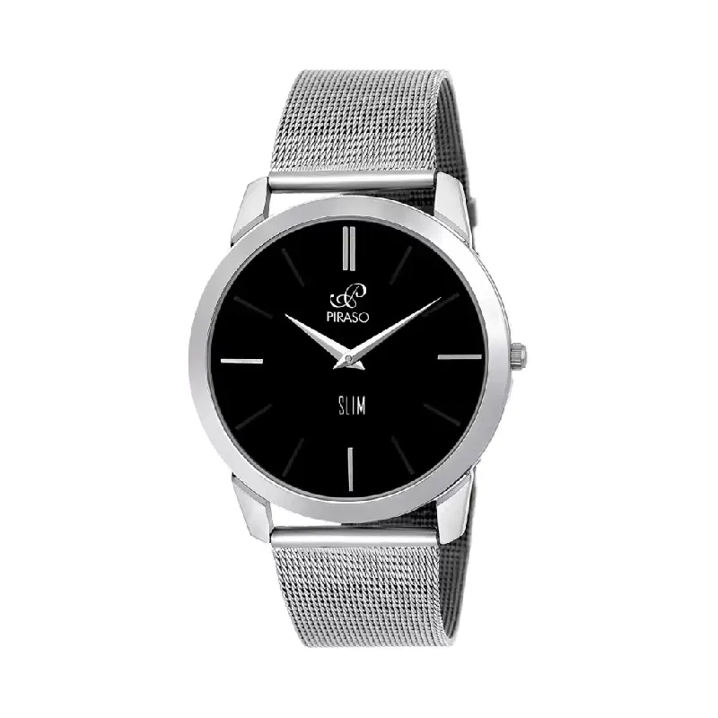 Piraso 1584 SL04 Black Dial Silver Mesh Design Strap Analog Watch for Men