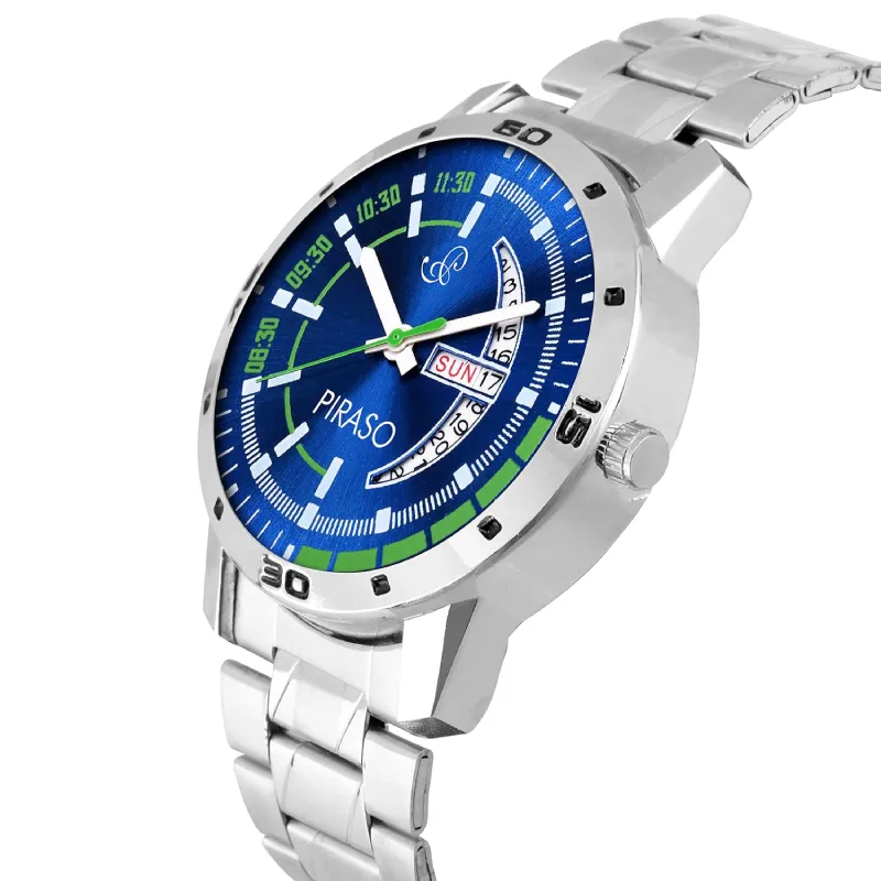 Piraso 27-BL-GN-CK Blue Dial Silver Chain Analog Watch for Men