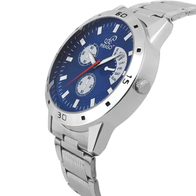 Piraso Decker 9127 Blue Dial Silver Chain Analog Watch for Men