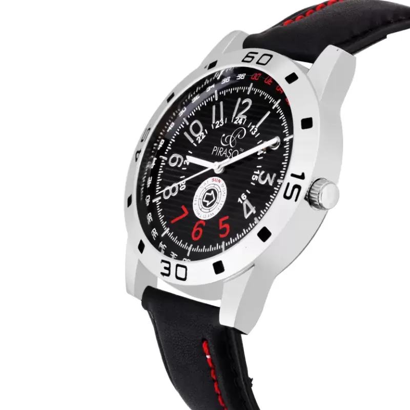 Introducing the Piraso PR-42 Black Dial Leather Strap Analog Watch, a symphony of sophistication and functionality crafted for the modern Indian man. Whether stepping into a boardroom or dressing up for a grand wedding, this timepiece promises to elevate your style quotient and keep you punctually prestigious.